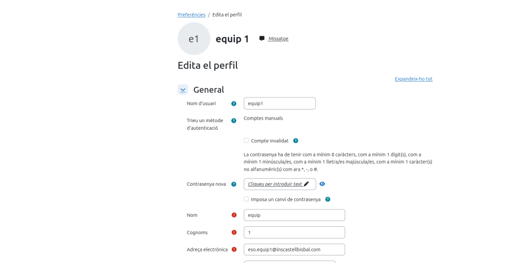 Tot i que no són obligatoris, he completat alguns camps addicionals per garantir una configuració més completa i coherent de l’usuari. Concretament, he indicat: