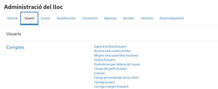 Dins del bloc Administració del lloc, he accedit a l’apartat Usuaris → Comptes d’usuari i, posteriorment, he seleccionat l’opció Afegir un usuari nou.