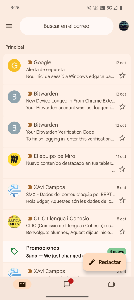 Sincronització en el mòbil del correu i xat