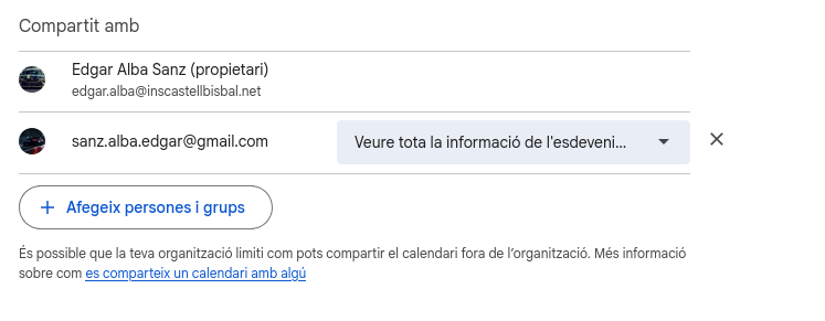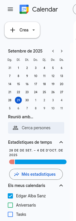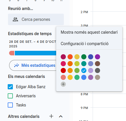 “A la barra lateral esquerra, veuràs la llista dels teus calendaris. Prem sobre el calendari personal que vols compartir.