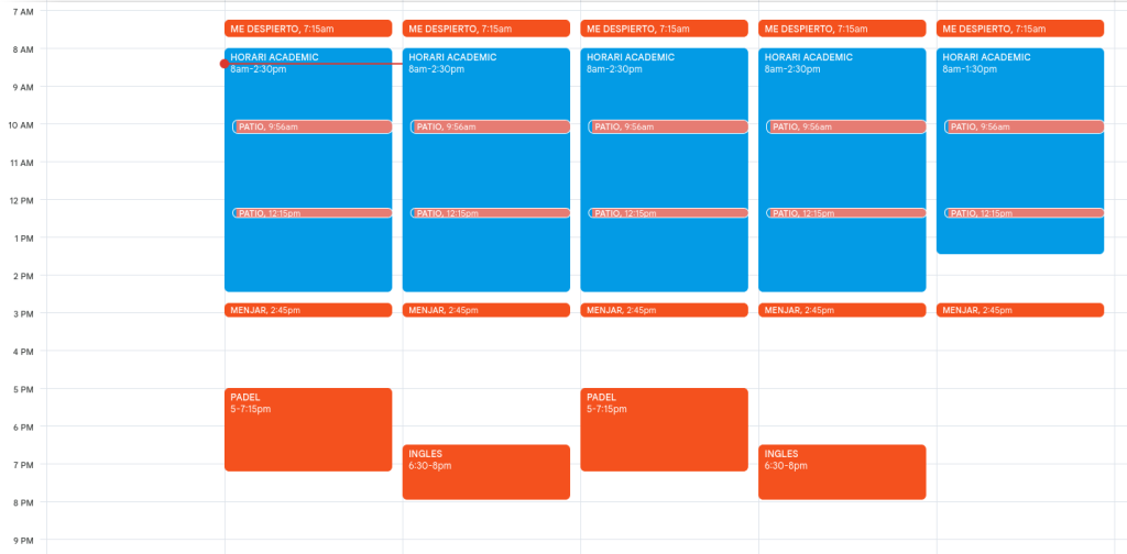 “Vaig enviar l’horari personal al corporatiu per correu electrònic, amb l’objectiu d’integrar i coordinar millor les activitats personals i ‘acadèmiques’.”